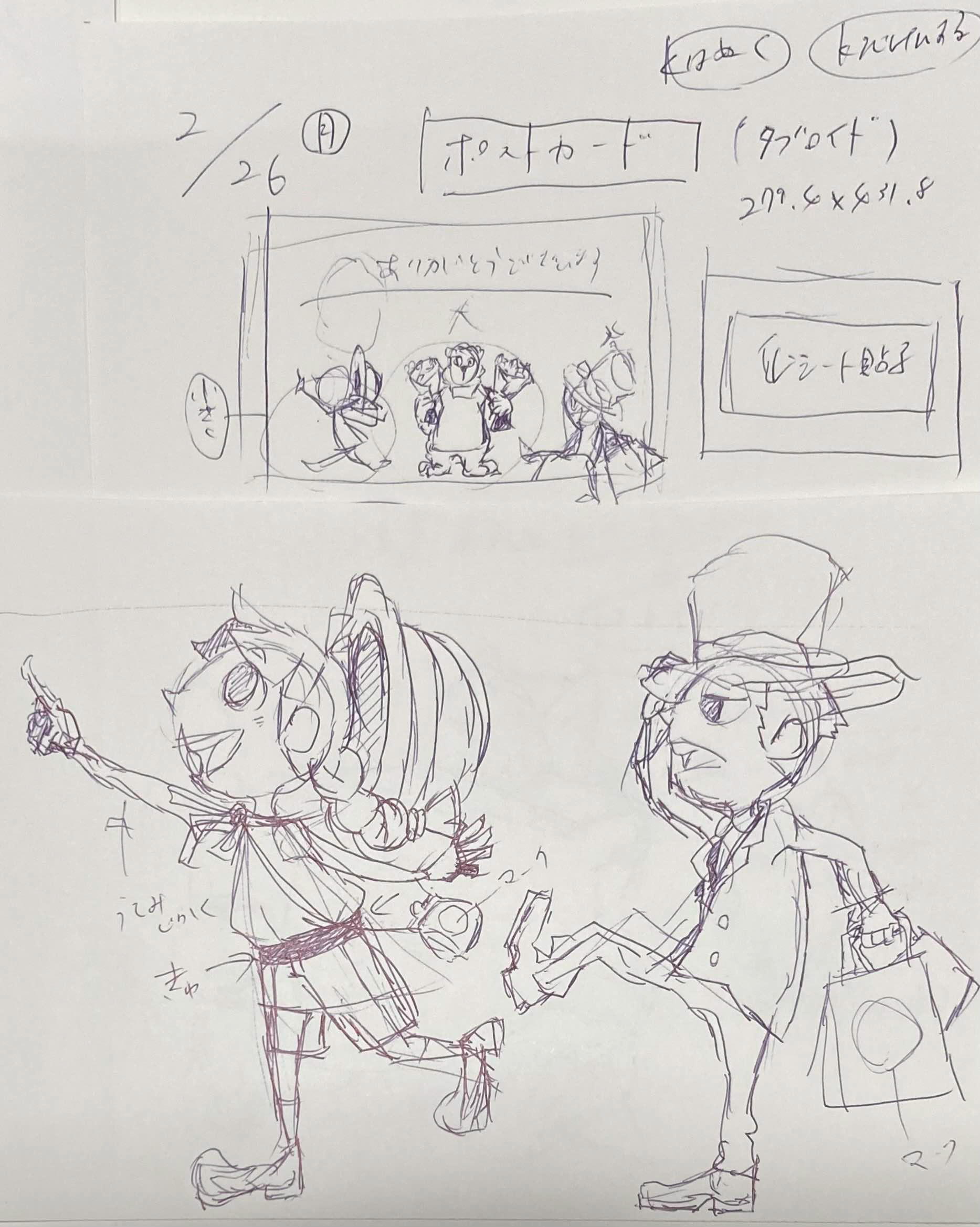 ●アナログでサムネとパーツラフを描いて練っていく
