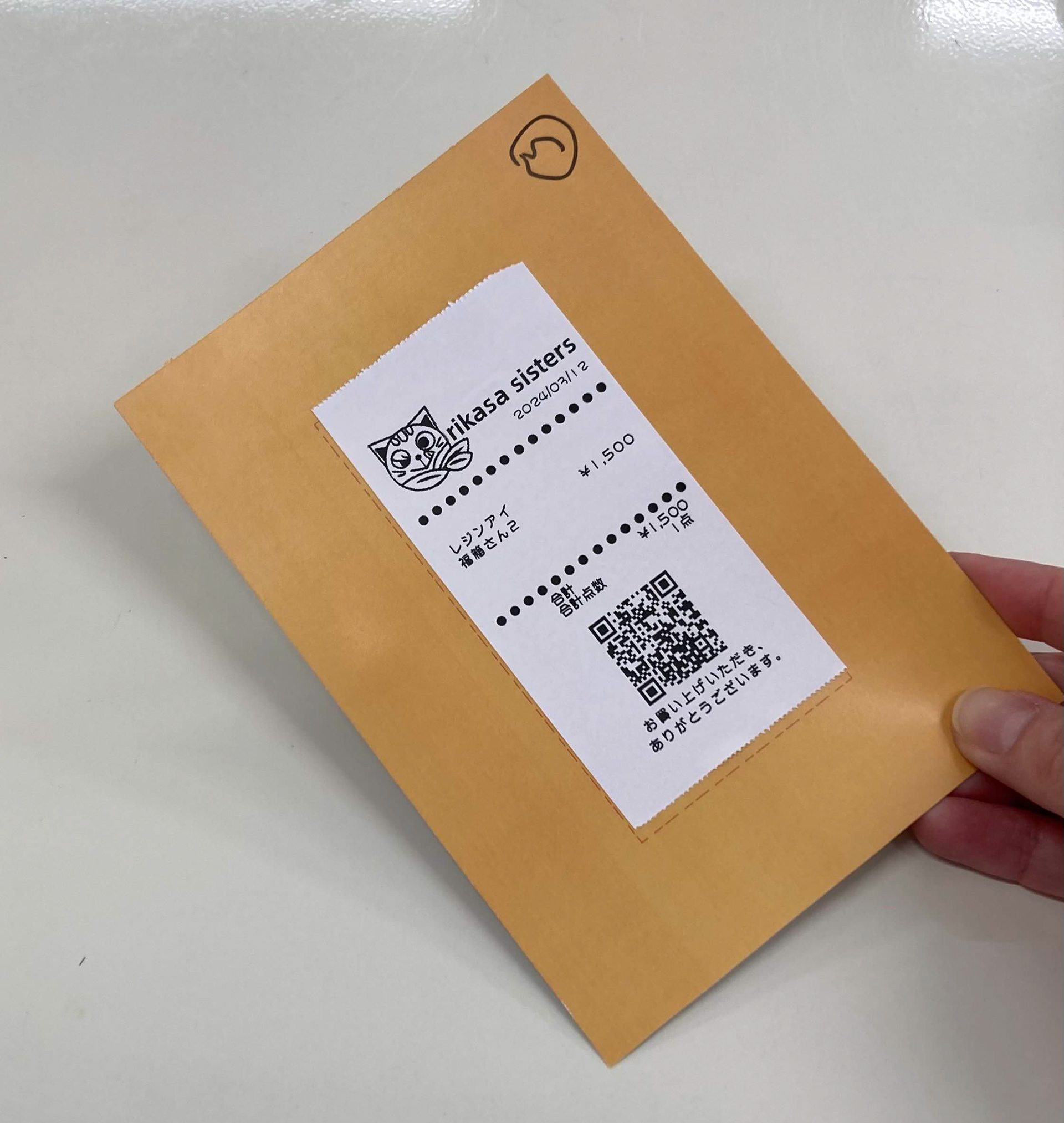 ●裏に疑似レシートを付けてメッセージを贈る
