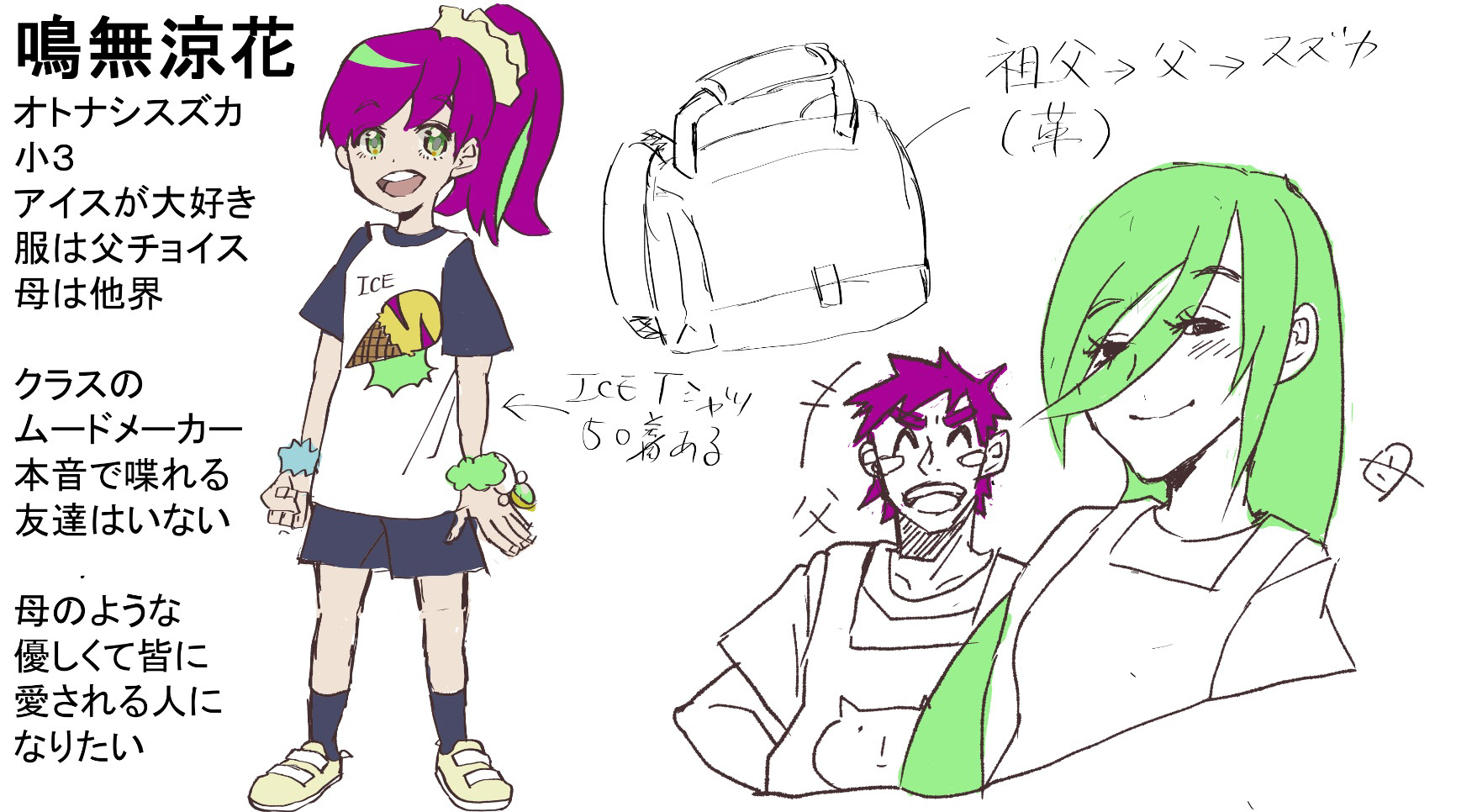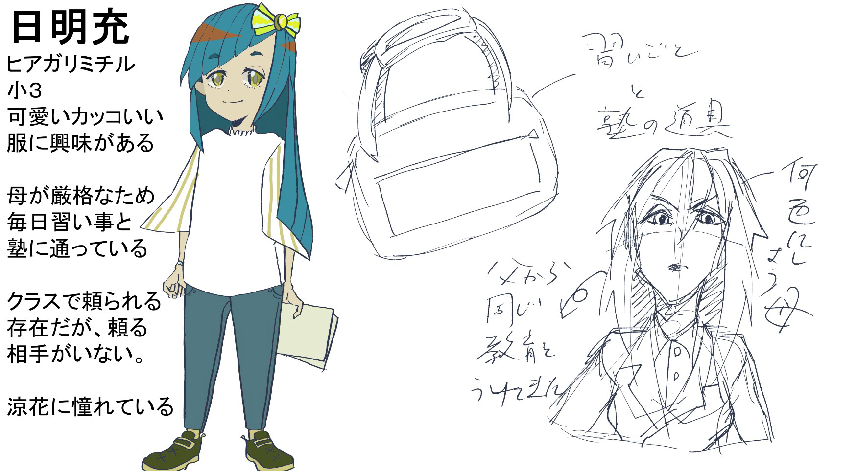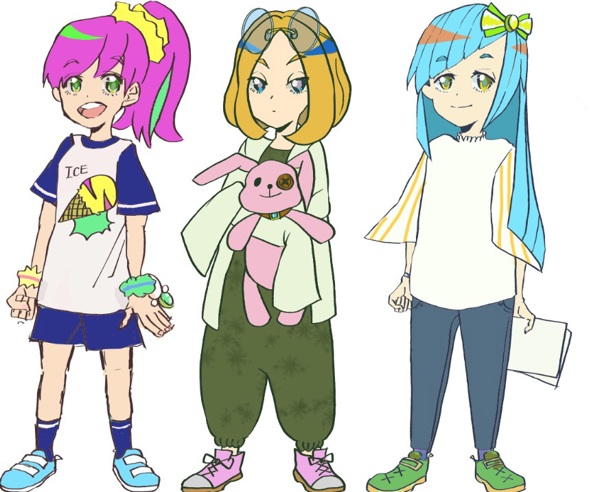 ●3人とも主人公で、髪や服やポージングで性格の差別化を念頭におく